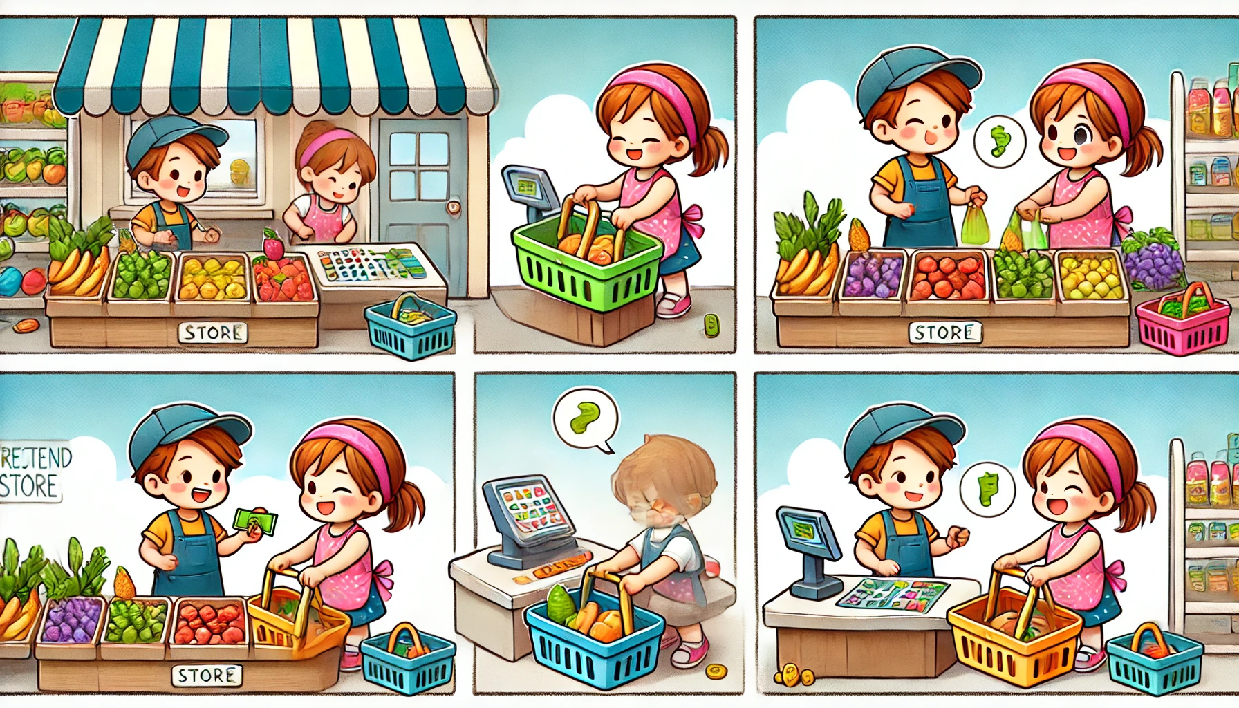 「先生と生徒」「店員とお客さん」「医者と患者さん」など、セリフや会話を通じて語彙や表現力が増えます。 - 想像力・創造性